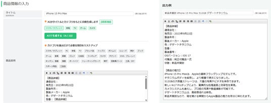 これにより、文章作成が苦手な方や出品初心者の方でも、商品情報の説明文を魅力的かつスムーズに登録することができます。※ご利用にはaucfan.comのプレミアム会員への登録が必要です。