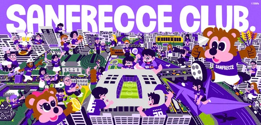 今回は、サンフレッチェ広島のファンクラブである「サンフレッチェクラブ」の「2025年 ご継続特典ご来場記念グッズ」のうち、バスタオルのイラストを担当いたします。サンフレッチェ広島と、広島という街への愛を込めたデザインに仕上げました。