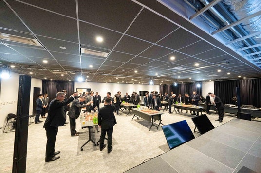 今回日立ソリューションズ東日本が利用したのは東京・白金高輪にある「PLATINUM STUDIO」の「ハイブリッド専用スタジオ」で、このスタジオには配信に適した通信環境はもちろん、大型ディスプレイなどセミナー参加者の没入感を高める設備が完備されています。セミナー終了後には同会場での懇親会を開催し、参加者・登壇者でのネットワーキングを実現しました。