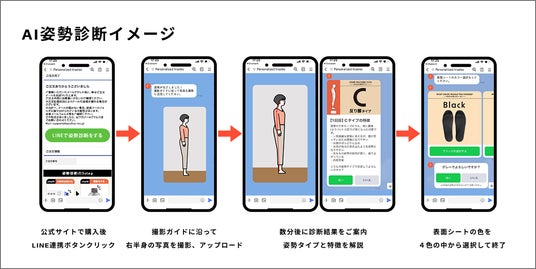本商品は、AI分析による姿勢診断の結果をもとに柔道整復師監修のパッティングを提案。湯煎で自分の足形に成型できるインソールを組み合わせることで“あなた専用のインソール”を実現します。