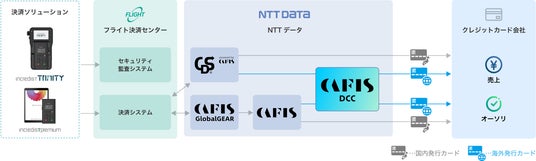 株式会社フライトソリューションズ(本社:東京都渋谷区、代表取締役社長 片山圭一朗、以下当社)は、自社で運営するクレジット決済センター(以下 フライト決済センター)が株式会社NTTデータ(本社:東京都江東区、代表取締役社長 佐々木裕、以下 NTT データ)の多通貨決済サービス「CAFIS DCC(R)」への接続を完了し、「PaymentMeister(ペイメント・マイスター)/Incredist Premium(インクレディスト・プレミアム)」および「Incredist Trinity(インクレディスト・トリニティ)」でのサービス提供を12月1日より開始することをお知らせします。