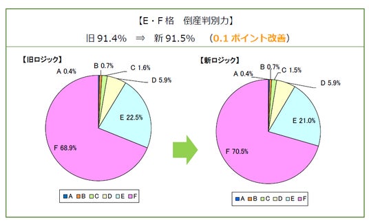 今回の改定では、収益性分析を強化しています。特に中小零細企業の収益構造に注目し、従来ロジックでは過小評価されていた企業に対して、評価の適正化を図っております。分析結果を踏まえ、倒産判別力の向上が見込まれることから、評価ロジックを改定し、格付精度の向上を図ります。