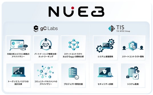 「NUE3」の提供にあたっては、gC Labsが市場分析やビジネス構築支援のアドバイザリー、トークンエコノミクスの設計支援、コミュニティマネジメントのアドバイザリーなどのコンサルティングを提供し、TISがweb3事業に必要なシステム基盤開発、スマートコントラクトの開発、セキュリティ診断などの開発支援全般を担います。