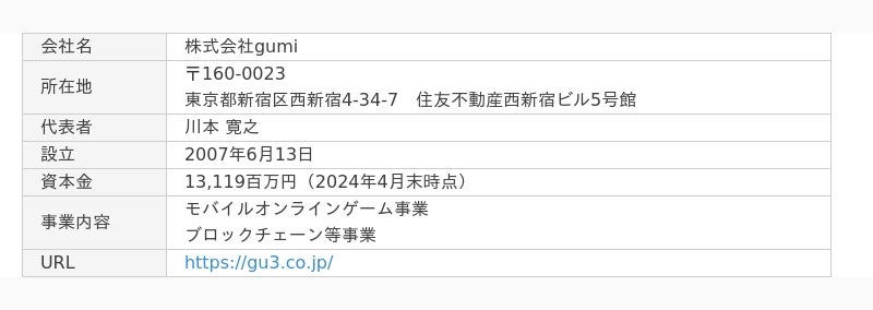 gumiは、「Wow the World! すべての人々に感動を」をMissionに掲げ、モバイルオンラインゲーム事業とブロックチェーン等事業の二つの事業を展開しています。モバイルオンラインゲーム事業では、『当社ゲームエンジン×IP』を軸とした収益性の高いタイトル開発を推進するとともに、開発受託にも注力しております。ブロックチェーン等事業では、ブロックチェーンゲーム等のコンテンツ開発、暗号資産を基盤にしたプラットフォーム構築、有力ブロックチェーンのノード運営、グローバルにおけるファンド投資等を行っております。