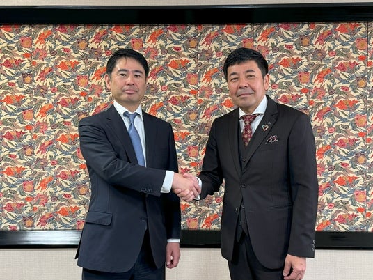 左:アイリッジ 代表取締役社長 小田 健太郎 / 右:沖縄テレビ 代表取締役社長 船越 龍二