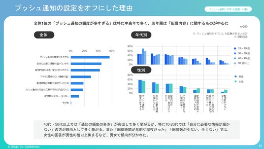 オフ理由は中高年が「配信頻度の多さ」、若年層は「配信内容」。女性からは「配信頻度の少なさ」も挙がった