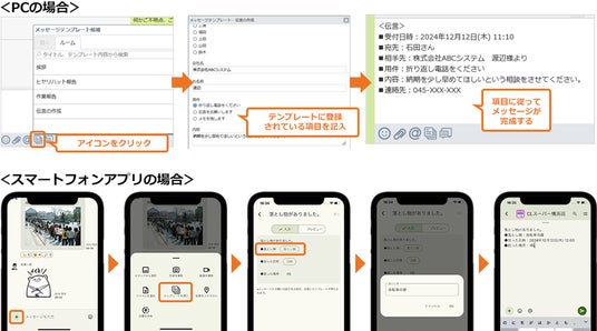 ルーム内での各種報告・連絡フォーマットを統一できるとともに、スマートフォンアプリからの報告・連絡も効率的に行えるようになります。