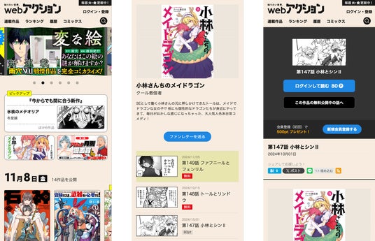 株式会社はてな(代表取締役社長:栗栖義臣/本社所在地:京都市中京区)は、株式会社双葉社(代表取締役社長:戸塚源久/本社所在地:東京都新宿区、以下「双葉社」)のWebマンガサイト「webアクション」に提供する当社開発のマンガビューワ「GigaViewer」の機能を拡張したことをお知らせします。本日2024年11月7日より、マネタイズ支援機能である「ストア機能」の提供を開始したことで、「webアクション」のユーザーは、購入したポイントを利用してマンガ作品をエピソード単位で楽しむことができます。