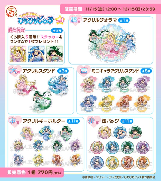 株式会社エディア(本社:東京都千代田区、代表取締役社長:賀島 義成)の子会社、株式会社ティームエンタテインメント(本社:東京都千代田区、代表取締役社長:賀島 義成 以下:ティームエンタテインメント)は、2024年11月15日(金) 12:00より『ぴちぴちピッチ』の描き下ろしオリジナルグッズを、インターネットで購入できる抽選くじサービス『まるくじ』にて販売開始したことをお知らせいたします。