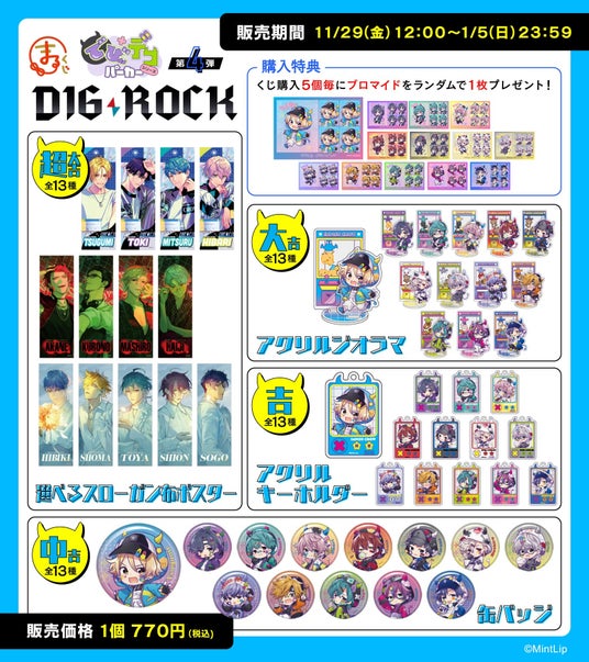 株式会社エディア(本社:東京都千代田区、代表取締役社長:賀島 義成)の子会社、株式会社ティームエンタテインメント(本社:東京都千代田区、代表取締役社長:賀島 義成 以下:ティームエンタテインメント)は、2024年11月29日(金) 12:00より『DIG-ROCK』の限定グッズを、インターネットで購入できる抽選くじサービス『まるくじ』にて販売開始したことをお知らせいたします。