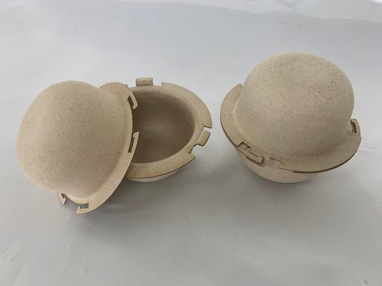 『剪定木のアップサイクルによるパルプモールド製トイカプセル』