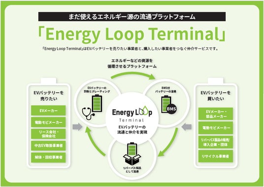 循環型マーケットデザインの株式会社オークネット(本社:東京都港区、代表取締役社長CEO:藤崎 慎一郎、以下:オークネット)は、MIRAI-LABO株式会社(本社:東京都八王子市、代表取締役社長:平塚 利男、以下:MIRAI-LABO)と新しい循環型BtoBマーケット創出のため、使用済みEV(電動自動車)リチウムイオンバッテリー(以下:EVバッテリー)を活用したリパーパス製品流通プラットフォーム「Energy Loop Terminal(エナジー・ループ・ターミナル)」の予約受注を2024年12月2日より開始いたします。