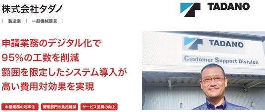 株式会社タダノが、クラウド型ワークフロー「X-point Cloud」導入により、1件あたりの申請業務に費やす処理時間を約1/20に短縮