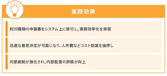 申請業務の可視化により内部統制が強化され、内部監査の評価も向上