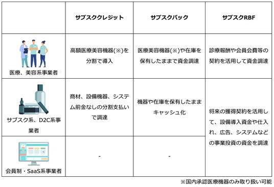 サブスク事業支援サービスを提供するテモナ株式会社(本社:東京都渋谷区、代表取締役社長:佐川 隼人、証券コード:3985、以下「テモナ」)の100%子会社であるサブスクソリューションズ株式会社が提供する「サブスククレジット」に新プランが追加されました。今まで提供してきたプランに加え、保有在庫や自社設備をもとにして資金調達が可能な「サブスクバック」、サブスク型ビジネスの売掛債権のファクタリングができる「サブスクRBF」が追加されました。幅広いニーズにお応えすることによりサブスク業界のファイナンス領域に新たなソリューションを提供します。