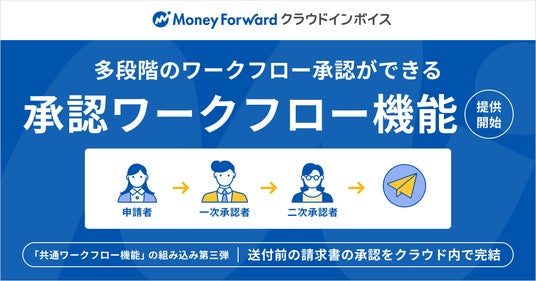 株式会社マネーフォワードは、『マネーフォワード クラウドインボイス』の送付プランにおいて、「承認ワークフロー」機能の提供を開始しました。サービス内にワークフローを組むことができ、送付前の請求書の回覧をスムーズに行うことができます。なお、今回の機能提供は、バックオフィスSaaS『マネーフォワード クラウド』におけるサービス併用時の体験向上の取り組みの一環として行っている、「共通ワークフロー」機能の組み込みの第三弾となります。