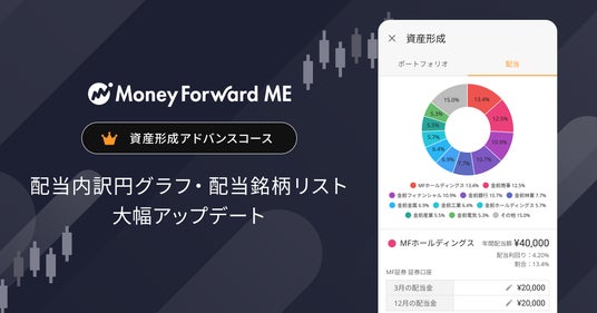 株式会社マネーフォワードは、『マネーフォワード ME』プレミアムサービス「資産形成アドバンスコース」において、配当管理機能をアップデートしました。「配当内訳円グラフ」では、保有比率が低い投資銘柄も表示されるようになったほか、「配当銘柄リスト」の一覧性の改善など、より投資資産の管理にお役立ていただけるようになります。