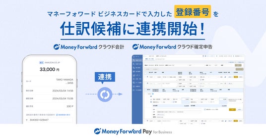 株式会社マネーフォワードは、『マネーフォワード ビジネスカード』において、取得した適格請求書発行事業者登録番号(以下、登録番号)と、『マネーフォワード クラウド会計』および『マネーフォワード クラウド確定申告』の仕訳候補との連携を開始しました。これにより、『マネーフォワード ビジネスカード』の利用明細から仕訳登録を行う際に、適格請求書発行事業者かどうか判定する工数を削減し、業務効率化を実現できます。