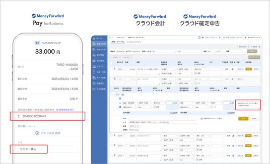 『マネーフォワード ビジネスカード』、入力した適格請求書発行事業者登録番号を『マネーフォワード クラウド会計』の仕訳候補に連携開始