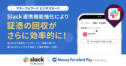 株式会社マネーフォワードは、『マネーフォワード ビジネスカード』において「Slack連携機能」を大幅アップデートし、Slack経由で証憑の回収を行えるようになりました。これにより、従業員がSlackで受け取った『マネーフォワード ビジネスカード』の決済通知から領収書などの証憑の提出、カード明細との紐づけが完了するため、効率的な経費精算業務が実現します。