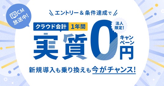 株式会社マネーフォワードは、2025年2月1日(土)~2025年4月30日(水)の期間、「クラウド会計 1年間実質0円※1キャンペーン」を開始します。また、キャンペーン開始に伴い放映中のテレビCM「バックオフィスメドレー」シリーズも、新たに「会計篇」を放映開始します。
