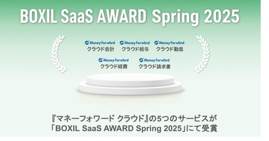 株式会社マネーフォワードが提供するバックオフィスSaaS『マネーフォワード クラウド』は、スマートキャンプ株式会社(以下「スマートキャンプ」)が今最も評価されているSaaS※を表彰する「BOXIL SaaS AWARD Spring 2025」において、5つのサービスで選出されました。