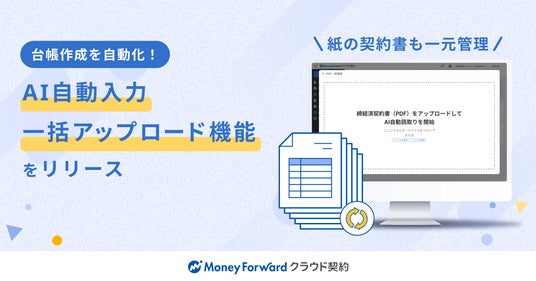 株式会社マネーフォワードは、『マネーフォワード クラウド契約』において、「AI自動入力機能」※1をアップデートし、AI-OCR技術を活用した「AI自動入力一括アップロード機能」の提供を開始しました。