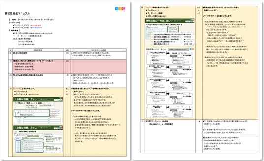 授業マニュアルには生徒の活動を見守る視点や声掛けのポイントも