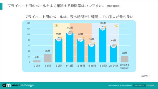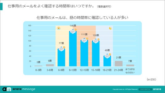 ◇仕事用のメールは昼、プライベート用のメールは夜の時間帯に受信内容を確認する人が多い