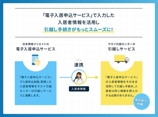 - 日本情報クリエイトの「電子入居申込サービス」とサカイ引越センターの引越しサービスが連携