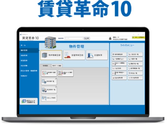■賃貸物件総合管理システム「賃貸革命10」について賃貸業務から管理業務まで一元管理できる、集客・管理に強い管理業務支援サービスです。入退去管理から家賃管理まで一元管理することで情報処理のミス・ロスを大幅に軽減することができます。また、賃貸革命クラウド版は、ネットワークを通してデータセンターにアクセスし、遠隔で利用できますのでテレワークにも適しています。