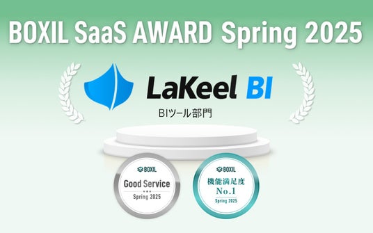 株式会社ラキール(本社:東京都港区、代表取締役:久保 努、以下「ラキール」) が提供するセルフサービスBIツール「LaKeel BI」は、スマートキャンプ株式会社(以下「スマートキャンプ」)が主催する「BOXIL SaaS AWARD Spring 2025」のBIツール部門で、「Good Service」「機能満足度No.1」選出されたことをお知らせします。