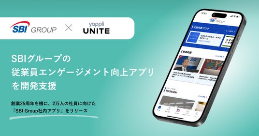 アプリプラットフォーム「Yappli(ヤプリ)」を提供する株式会社ヤプリ(本社:東京都港区、代表取締役:庵原保文、以下「ヤプリ」)は、SBIホールディングス株式会社(本社:東京都港区、代表取締役会長兼社長:北尾吉孝、以下「SBIホールディングス」)が、従業員エンゲージメント向上サービス「Yappli UNITE(ヤプリユナイト)」を活用し、「SBI Group社内アプリ」の開発支援をしたことをお知らせいたします。