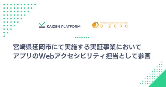 株式会社Kaizen Platform(本社:東京都港区、代表取締役:須藤 憲司、以下「Kaizen Platform」)とグループ会社の株式会社ディーゼロ(以下「ディーゼロ」)は、富士通株式会社が代表機関として宮崎県延岡市にて実施する実証事業「Wi-Fi HaLowを活用した自助・共助の実現と地域コミュニティ力の強化」において、アプリケーションのWebアクセシビリティ担当として参画することをお知らせします。なお本事業は、総務省事業「令和6年度 地域デジタル基盤活用推進事業」に採択されており、Kaizen Platformグループとして、延岡市が第6次延岡市長期総合計画にて掲げる防災への取り組み強化をアクセシビリティの観点から支援してまいります。