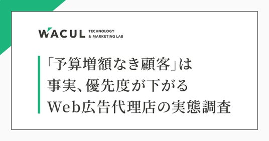 データと知見を核に、戦略から実行までマーケティングDXを一気通貫で支援する株式会社WACUL(住所:東京都千代田区、読み:ワカル、代表取締役社長:大淵 亮平、証券コード:4173、以下当社)は、Web広告代理店に務める有識者にアンケートを行い、成果につながる「代理店との向き合い方」を提言したレポートを公開しました。