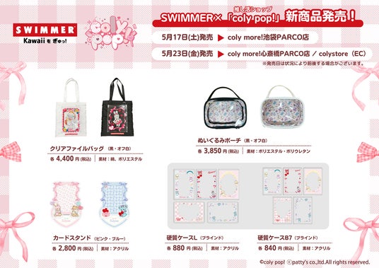 株式会社coly(本社:東京都港区赤坂、代表取締役社長:中島 杏奈)が運営する”推し活”ストア「coly pop!」と、ファンシーでかわいい「SWIMMER」とのコラボ推し活グッズに、新商品が登場します!