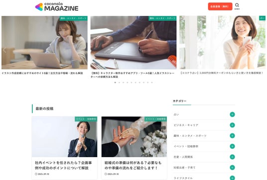 プライベートシーン向けのオウンドメディア「ココナラマガジン」では、ニーズの高まっているカテゴリを中心に出品時のコツやノウハウを、またビジネスシーン向け「ココナラビジネスマガジン」では、拡大するサービスをより効果的に活用していただけるよう、「発注のコツ」「企業様の導入事例」といったコンテンツを提供するほか、今後は企業の外部人材・スキルの活用の活性化を目的とした業界の旬な情報や有識者インタビュー、調査結果など、多彩なコンテンツを展開していく予定です。