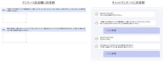 アンケートの自由回答欄に記述する群とチャット形式で自由回答を記述する群に分けて、