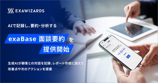 株式会社エクサウィザーズ(東京都港区、代表取締役社長:春田 真、以下エクサウィザーズ)は、営業内容などをAIで記録し、要約・分析する「exaBase 面談要約」を2024年12月16日より提供を開始しました。exaBase 面談要約はスマートフォンやPCを利用して、営業先やコールセンターなどでのお客様とのミーティング、社内会議などを記録・要約し、内容をチャットから確認したり、コンプライアンス上の問題がないかチェックしたりできます。また、生成AIが会話内容の分析から次にとるべきアクションも提案し、担当者の生産性を向上させます。