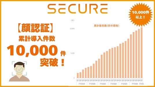 「AI(画像解析)×セキュリティ」で企業の課題解決のためのビジネスソリューションを提供する株式会社セキュア(本社:東京都新宿区 代表取締役社長:谷口 辰成、証券コード:4264、以下「セキュア」)は、提供している顔認証関連ソリューションの累計導入件数が10,000件を突破(※)したことをお知らせします。