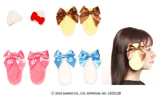 サンリオキャラクターズの耳をモチーフにした、かわいいなりきりヘアクリップ。ソフトボア生地でふわふわの手触りです。「ハローキティ」、「マイメロディ」、「ポムポムプリン」、「シナモロール」の全4種類。