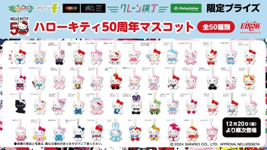 50thデザインやアメリカンデザインなど全50種類の「ハローキティ50周年マスコット」がいよいよ登場!モーリーファンタジー・PALOにて12月20日(金)より展開開始