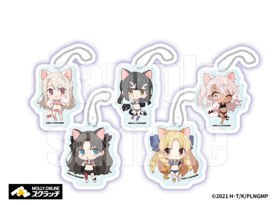 ネコ耳がかわいいデフォルメデザインのイリヤ、美遊、クロエ、凛、ルヴィアのクリアポスター。