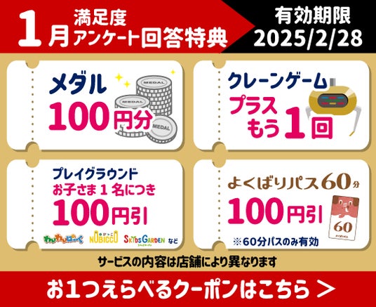 参加方法:イオンファンタジーLINE公式アカウントより「クーポン一覧」に格納される抽選クーポンから利用可能