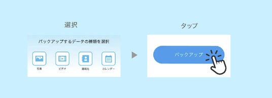 操作はバックアップボタンをタップするだけ。専用アプリを起動したら自動でバックアップするようにも設定できます。さらに、Androidでは夜間の自動バックアップも可能です。