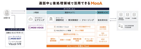 これを踏まえ、モビルスは、コンタクトセンター運用の応対品質と業務効率を改善するオペレーション支援AI「MooA」に、文字起こしやAIが通話内容を分析するオペレーター向け回答支援ダッシュボード「MooA CommNavi」と、生成AIを活用し、企業内ナレッジを組み込んだナレッジ検索機能「MooA KnowledgeBase」(ベータ版)を2024年11月14日以降順次提供開始します。