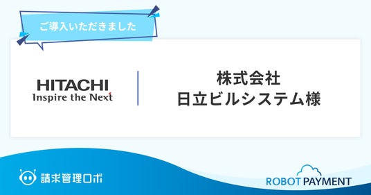 株式会社ROBOT PAYMENT(本社:東京都渋谷区、代表取締役:清久 健也、証券コード:4374、以下「ROBOT PAYMENT」)は、請求・債権管理クラウド「請求管理ロボ」が、株式会社日立ビルシステム(本社:東京都千代田区、代表取締役 取締役社長:網谷 憲晴、以下「日立ビルシステム」)に導入されたことをお知らせします。