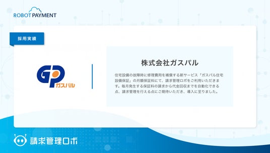 株式会社ROBOT PAYMENT(本社:東京都渋谷区、代表取締役:清久 健也、証券コード:4374、以下、当社)は、請求・債権管理システム「請求管理ロボ」が、株式会社ガスパル(本社:東京都品川区、代表取締役社長:橋本 俊昭、以下 ガスパル)に導入されたことをお知らせします。