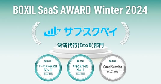 サブスクペイ、「BOXIL SaaS AWARD Winter 2024」決済代行(BtoB)部門で「Good Service」に6期連続選出
