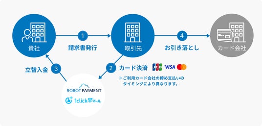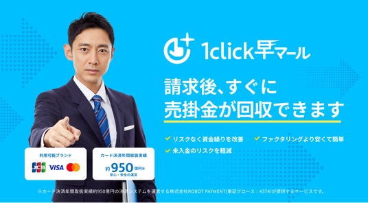 株式会社ROBOT PAYMENT(本社:東京都渋谷区、代表取締役:清久 健也、証券コード:4374、以下 当社)は、請求書の早期入金サービス「1click早マール」を、2024年12月5日(木)より提供開始します。当社がカード加盟店業務を担い、カード払い請求書を発行することで、決済後最短3営業日で入金を受けることが可能です。仕入れから販売まで、資金流出期間が長くなりがちな卸売業や建設業などを中心に、多くのお客様の資金繰りを改善します。また、与信不安のある取引先に対して、貸し倒れのリスクも解消します。